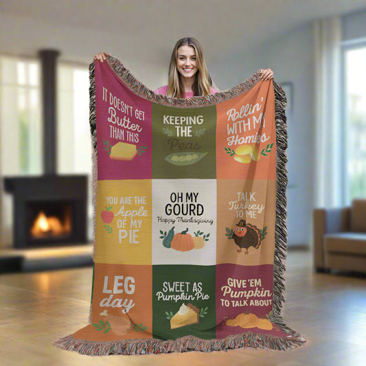 Gift for Thanksgiving — "Keeping the Peas" Cozy and Humorous Woven Blanket